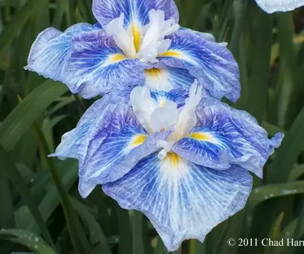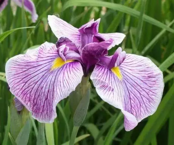 该变种为园艺变种,品种甚多,植物的营养体、花型及颜色因品种而异。叶宽条形,长50-80厘米,宽1-1.8厘米,中脉明显而突出。花茎高约1米,直径5-8毫米;苞片近革质,脉平行,明显而突出,顶端钝或短渐尖;花的颜色由白色至暗紫色,斑点及花纹变化甚大,单瓣以至重瓣。性喜潮湿,多栽于河、湖、池塘边,或盆栽。花期6-7月,果期8-9月。