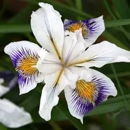 玉蝉花花姿绰约,花色典雅,是人们最为喜爱的鸢尾属植物,5-6月开花,花朵硕大,色彩艳丽,园艺品种多,花形和花色变化很大,观赏价值较高。性喜水湿,适合布置水生鸢尾专类园或在池旁或湖畔点缀,也是切花的好材料。