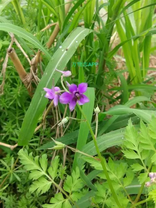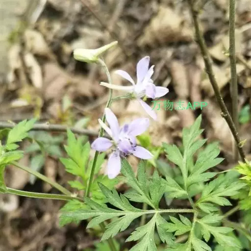 还亮草(学名:Delphinium anthriscifolium Hance)是毛茛科,翠雀属多年生草本植物,茎高可达78厘米,等距地生叶,分枝。羽状复叶,近基部叶在开花时常枯萎;叶片菱状卵形或三角状卵形,羽片狭卵形,表面疏被短柔毛,背面无毛或近无毛;叶柄无毛或近无毛。总状花序,有花多达15朵;轴和花梗短柔毛;基部苞片叶状,小苞片生花梗中部,披针状线形,萼片堇色或紫色,椭圆形至长圆形,退化雄蕊与萼片同色,无毛,种子扁球形,3-5月开花。
