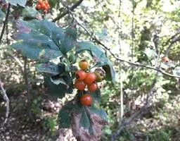 火棘 H. L. Li)是蔷薇科火棘属常绿灌木,老枝呈暗褐色;叶片呈倒卵形,边缘有钝锯齿,齿尖向内弯,…