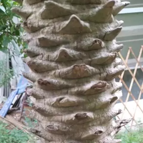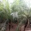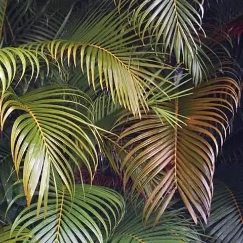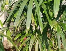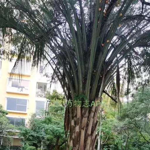茎丛生或单生,高2-5米,直径达30厘米以上。叶长达2米;羽片线形,长15-35厘米,宽10-15毫米,单生或2-3片聚生,呈4列排列。佛焰苞长15-20厘米,褐色,不开裂为2舟状 瓣;花序梗长60厘米以上;雌花序分枝短而粗壮,长7-15厘米;雄花近白色;花萼长1-1.5毫米,顶端具3齿;花瓣3,长4-5毫米,宽1.5-2毫米;雄蕊6;雌花花萼长约1毫米,顶端不具三角状齿;花瓣圆形,直径约2毫米;心皮3,卵形,长约15毫米,宽8毫米。果实长圆形,长l.5-2厘米,成熟时紫黑色,基部具宿存的杯状花萼。花期4-5月,果期6-10月。