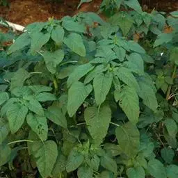 反枝苋是苋科苋属的一年生草本植物。株高达1米;茎密被柔毛;叶菱状卵形或椭圆状卵形,先端锐尖或尖凹,…
