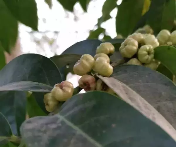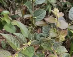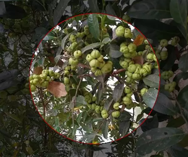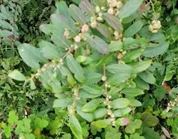 花簇生于叶腋内,雌雄花分别着生于不同的小枝上或雌花1-3朵生于雄花束内;雄花:花梗长8-10毫米;萼片6,倒卵形或长倒卵形,长约3毫米,黄色;雄蕊5-6;雌花:花梗长2-4毫米;萼片6,3片较大,3片较小,大的卵形,小的狭卵形,长2.5-3毫米;子房圆球状,6-8室,密被短柔毛,花柱合生呈卵形,长不及1毫米,约为子房长的-半,顶端近截平。蒴果近球状,直径12-18毫米,高7-10毫米,顶端常凹陷,边缘具6-8条纵沟,顶端被微柔毛,后变无毛。花期4-9月,果期7月-翌年2月。