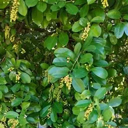 艾胶算盘子(学名:Glochidion lanceolarium,又称大叶算盘子)是属于大戟科算盘子属下的一个种。常绿灌木或乔木,通常高1-3米,稀7-12米;除子房和蒴果外,全株均无毛。产于福建、广东、海南、广西和云南等省区,生于海拔500-1200米山地疏林中或溪旁灌木丛中。