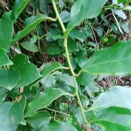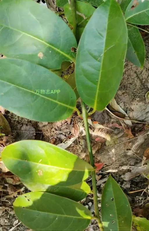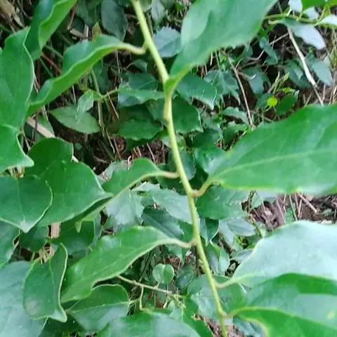常绿攀援木质藤本;嫩枝绿色,老枝褐色,具白蜡层。叶革质,椭圆形、长圆状椭圆形或卵状椭圆形,长7—15厘米,宽4—6厘米,先端短渐尖或急尖,基部阔楔形或圆形,两面均无毛;侧脉每边6—7条,网脉稀疏,在叶面不明显,在叶背明显凸起;叶柄长1.5—2.5厘米。