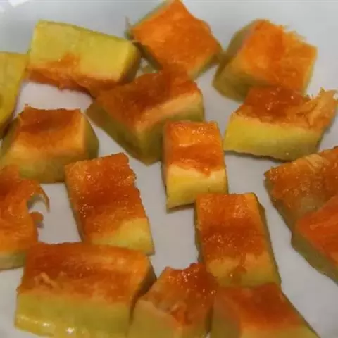 蜜汁南瓜为延安的一道特色小吃,使用陕北优质八棱南瓜为最佳,做法简单,口感绵软,香甜怡人。而且具有解…