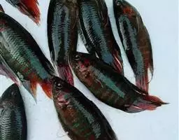 亦称绿翅鱼、鲂、角鱼。一种海产鱼。鲂科,绿鳍鱼属。体延长,稍侧扁, 绿鳍鱼 前部稍大,后部渐狭小,一般体长15~30cm。背侧红色,腹面白色,头部及背侧面有蓝褐色网状斑纹。我国近海均有分布。肉细嫩,刺少,氽汤味鲜美。每100g可食部含:蛋白质20.5g,脂肪4.4g。