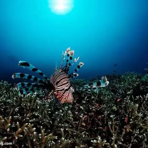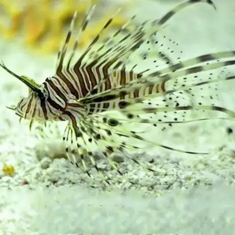 斑鳍蓑鲉是鲉科,蓑鲉属硬骨鱼。体长25-40厘米,体表黄色,布有红色至棕色条纹。背部有毒棘,胸鳍羽…