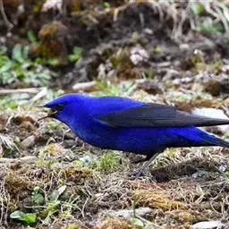 蓝大翅鸲是鹟科、大翅鸲属小型鸟类,体长19-21厘米。两翅尖长。雄鸟通体鲜紫蓝色具金属光泽。…