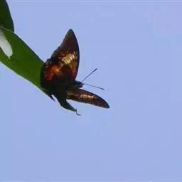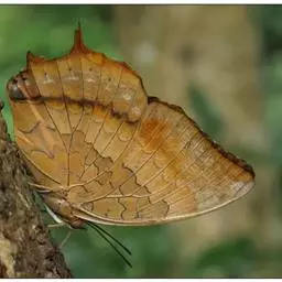 这种原产于特立尼达岛的猫头鹰蝶扮成毒蛇的样子 ,可以成功地捉弄它们的捕食者。当它们蜕下最后一层皮时,它们就进入了蛹期,并且换上了毒蛇的装扮。这种变形会持续13天。