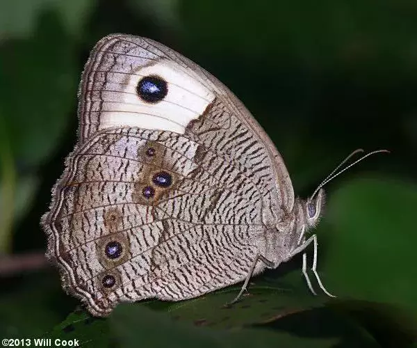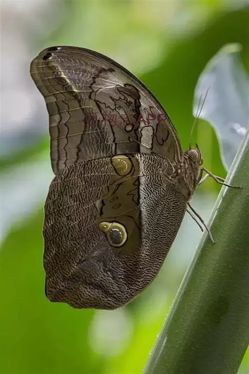 翅展:可达15厘米 。猫头鹰蝴蝶的名字来源于它们翅膀上的图案。下层两侧翅膀上,分别有一处像猫头鹰眼睛一样的图案。其图案的功能就是在欺骗捕食者,让对方误认为正有一只大眼睛动物在凶狠地瞪着它们。