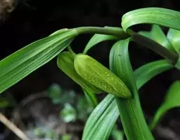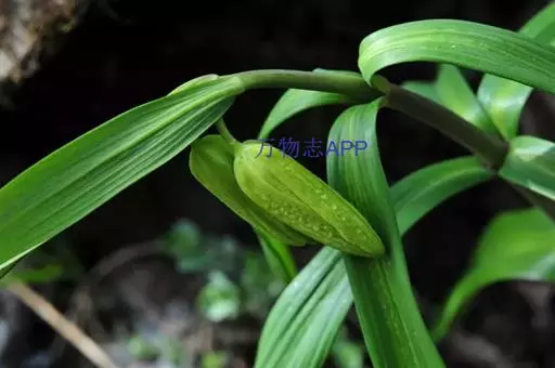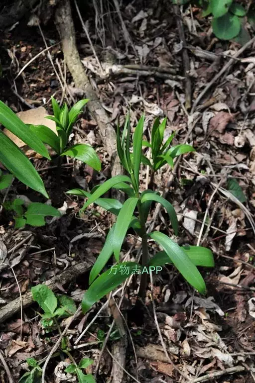 植株长45-60厘米。鳞茎由2枚鳞片组成,直径约2厘米。叶通常对生,有时兼有散生或3叶轮生的,矩圆状披针形至披针形,长10-12厘米,宽1.5-2.8(-4.5)厘米,先端不卷曲。