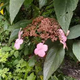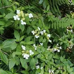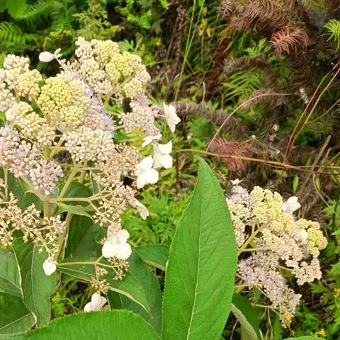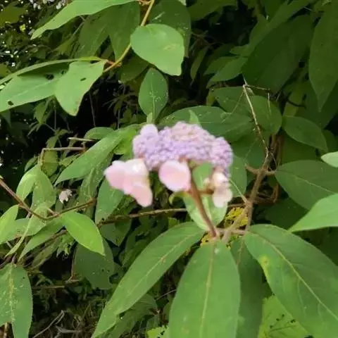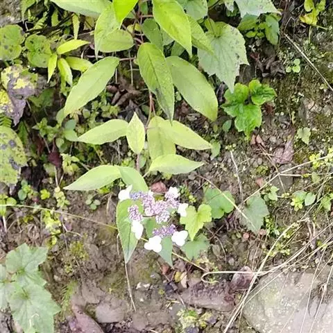 圆锥绣球,虎耳草科挂苦子组灌木或小乔木,枝暗红褐色或灰褐色,初时被疏柔毛,后变无毛,具凹条纹和圆形浅色皮孔。生长于山谷、山坡疏林下或山脊灌丛中。