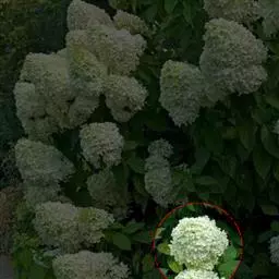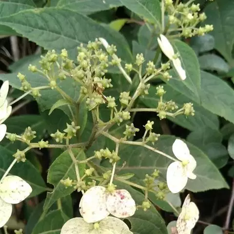 本种与绣球的区别是:小枝稍带方形。叶在上部节上 圆锥绣球叶 :有时三片轮生。圆锥花序顶生;不孕花白色;萼瓣4,大小不等;孕性花白色,芳香。蒴果近卵形。