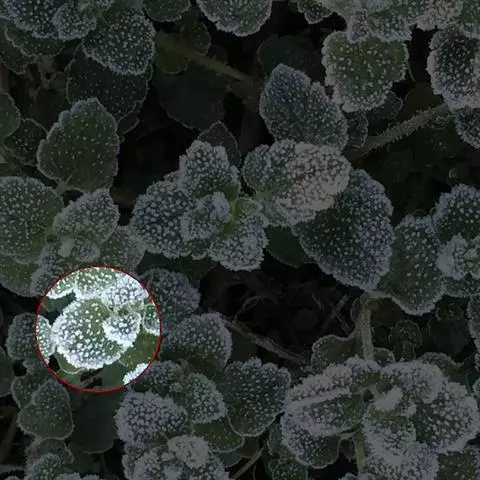 叶纸质,2-3片对生或轮生,卵形或椭圆形,长5-14厘米,宽2-6.5厘米,先端渐尖或急尖,具短尖头,基部圆形或阔楔形,边缘有密集稍内弯的小锯齿,上面无毛或有稀疏糙伏毛,下面于叶脉和侧脉上被紧贴长柔毛;侧脉6-7对,上部微弯,小脉稠密网状,下面明显;叶柄长1-3厘米。