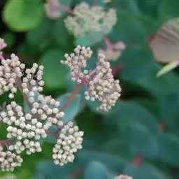 圆锥状聚伞花序尖塔形,长达26厘米,序轴及分枝密被短柔毛;不育花较多,白色;萼片4,阔椭圆形或近圆形,不等大,结果时长1-1.8厘米,宽0.8-1.4厘米,先端圆或微凹,全缘;孕性花萼筒陀螺状,长约1.1毫米,萼齿短三角形,长约1毫米,花瓣白色,卵形或卵状披针形,长2.5-3毫米,渐尖;雄蕊不等长,长的长达4.5毫米,短的略短于花瓣,花药近圆形,长约0.5毫米;子房半下位,花柱3,钻状,长约1毫米,直,基部连合,柱头小,头状。