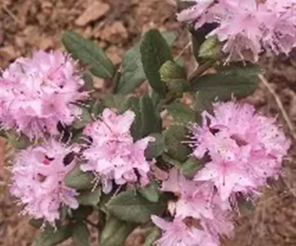 腋花杜鹃(学名:Rhododendron racemosum Franch.):小灌木,高可达2米,分枝多。叶片散生,长圆形或长圆状椭圆形,上面密生黑色或淡褐色小鳞片,下面通常灰白色,叶柄短,被鳞片。花序腋生枝顶或枝上部叶腋,有花2-3朵;花梗纤细,花萼小,环状或波状浅裂,花冠小,宽漏斗状,粉红色或淡紫红色,裂片开展,花丝基部密被开展的柔毛;蒴果长圆形,3-5月开花。