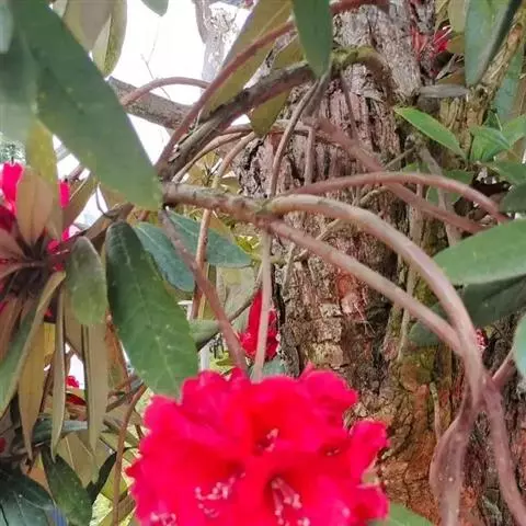 美容杜鹃:常绿灌木或小乔木,高2-12米;树皮黄灰色或棕褐色,片状剥落;幼枝粗壮,绿色或带紫色。冬…