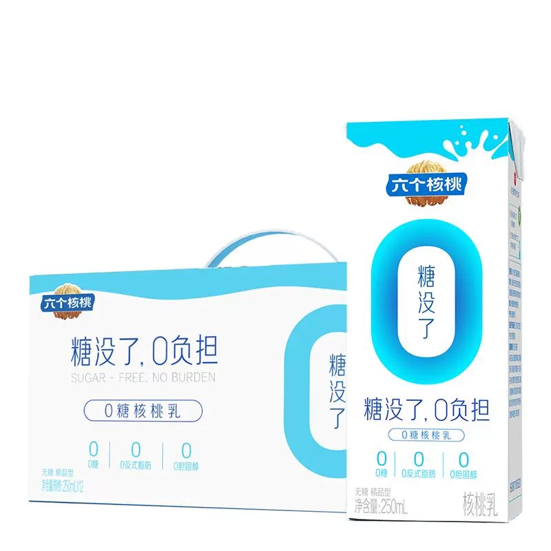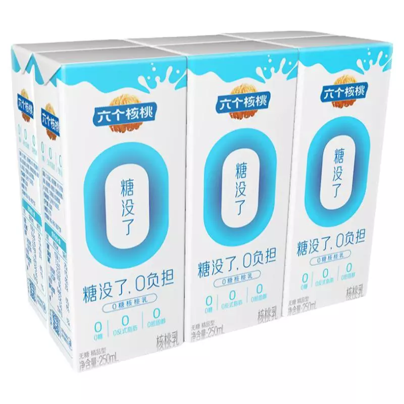 六个核桃是河北养元智汇饮品股份有限公司生产的一种核桃植物蛋白饮料,能够有效改善大脑疲乏状态,适合学生、白领等用脑人群饮用。六个核桃分为无糖型和低糖型,是植物蛋白饮料行业具有广泛影响力的品牌。