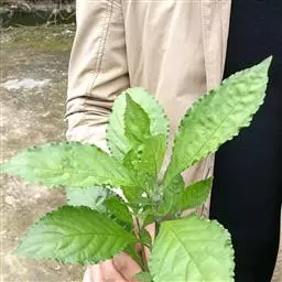 草本或小灌木,高30-50厘米,可达1.5米。茎下部常木质化,基部常匍匐生根,稀直立,仅嫩枝4棱,被硬毛,侧枝上的叶常较小,顶端渐尖或急尖,基部渐狭或稍下延,边缘具细锯齿或牙齿,两面被疏刺毛,上面钟乳体多为细而平行的线条,主脉下陷,侧脉每边5条,紫色,下面脉凸起,具顶端钩状囊状体,粗糙或稍粗糙,毛较密;叶柄长4-10厘米。