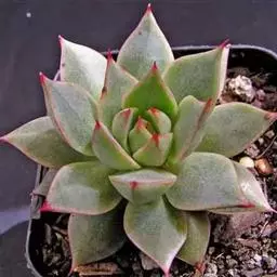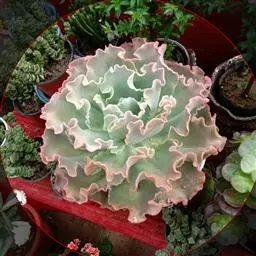 女王花笠(Echeveria ‘Meridian’) ,又名扇贝石莲花、女王花舞笠,是景天科拟石莲花属的多肉植物(多浆植物)。由美国加利福尼亚州的育种师Dick Wright于1964年培育。特征是呈大波浪状褶皱的红色叶缘和气质高贵的粉紫色调。拉丁名意为“子午线”。 亲本之一为E. crenulata。