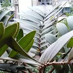 鳞秕泽米多为单干,干桩高15—30厘米,少有分枝,有时呈丛生状,粗圆柱形,表面密布暗褐色叶痕,多年生植株的总干基部茎盘处,常着生幼小的萌蘖;叶为大型偶数羽状复叶,丛生于茎顶,长60一120厘米,硬革质,叶柄长15.20厘米,疏生坚硬小刺,羽状小叶7一12对,小叶长椭圆形,两侧不等,基部2/3处全缘,上部密生钝锯齿,顶端钝渐尖,边缘背卷,无中脉,叶背可见明显突起的平行脉40条;雌雄异株,雄花序松球状,长10—15厘米,雌花序似掌状。