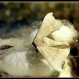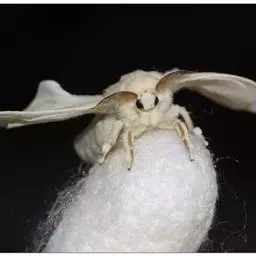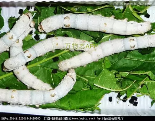 蚕蛾幼虫,吃桑叶,在化蛹前吐出作茧用的大量蚕丝是重要的纺织原料。桑蚕是完全变态昆虫,一生经过卵、幼虫、蛹、成虫等四个形态上和生理机能上完全不同的发育阶段。卵是胚胎发生、发育形成幼虫的阶段,幼虫是摄取食物营养的生长阶段,蛹是从幼虫向成虫过渡的变态阶段,成虫是交配产卵繁殖后代的生殖阶段。整个世代只幼虫期摄食,并为蛹和成虫期的生命活动积贮营养。