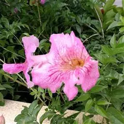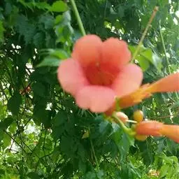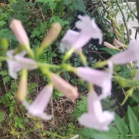 花萼钟状,绿色或紫红色,具深紫色斑点,长12-18毫米,萼齿三角形,长6-12毫米,宽5-7毫米。花冠红色或紫红色,长3.5-4厘米,直径约2厘米,花冠筒外面紫色,具黑色斑点,内面具少数紫色条纹,裂片圆形,长1.7-2.8厘米,宽2-3.9厘米,顶端微凹,具腺体。雄蕊4,2强,着生于花冠筒基部,花药两两靠合;退化雄蕊小,弯曲。子房长圆形,2室,每室胚珠2列,花柱长达4厘米,柱头扇形。