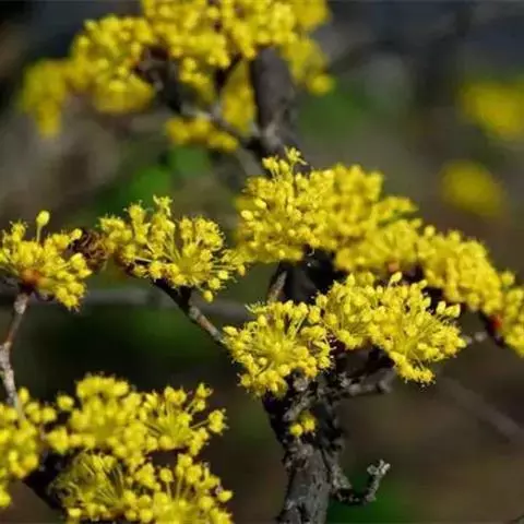 药理用途:山茱萸之果实山萸肉,味酸涩,性微温,有补肝肾、涩精气、固虚脱、健胃壮阳等功能,中医常用以治疗腰膝酸痛、眩晕、耳鸣、遗精、尿频、肝虚寒热、虚汗不止、心摇脉散、神经衰弱、月经不调等症。茱萸还是中成药知柏地黄丸、益明地黄丸、爱味地黄丸、十全大补丸、六味地黄丸的主药。山茱萸含有生理活性较强的山茱萸甙、马草鞭甙、皂甙、鞣甙,以及丰富的维生素C等营养成分。能抑制痢疾杆菌、伤寒杆菌、金黄涩葡萄球菌及某些皮肤真菌,有利尿、降压、防癌作用。 茱萸花
