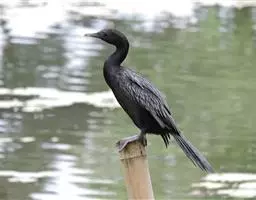 黑颈鸬鹚(学名:Phalacrocorax niger),中型水鸟,体长50~51厘米。繁殖期通体黑色,缀有深蓝色和蓝绿色光泽;肩、内侧次级飞羽及翅覆羽暗银灰色,羽缘黑色;头顶、头的两边和颈缀有少许白色丝状羽;枕部和后颈有轻微的短的羽冠。主要以鱼为食。繁殖于各种适合于营巢而又富有食物的湖泊、池塘和沼泽地上,也营巢于比较小的水塘。常成5~6对的小群在一起营巢,偶尔也见有多至50~60对的大群在一起营巢于水边树上或比较高的草丛中。