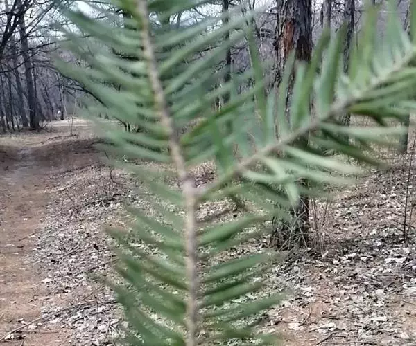 树皮幼时外表面灰褐色或白褐色,不剥裂;老时暗褐色,浅裂,内面灰白色。叶条形,长2-4cm,宽1.5-2.5mm。先端突出或渐尖,坚硬,叶内树脂管中生。树皮气微,味微苦。叶气微,味淡。