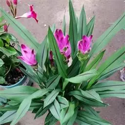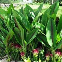 栽种方法:在整好的畦内按行株距30厘米×20~25厘米挖穴,穴深6~9厘米 莪术 ,每穴内大根茎放1块,小根茎放2块,芽头向上栽入穴内。栽后覆土6厘米并稍加镇压,每亩用种根茎100千克左右。另外,为提高土地效益,主产区多采用与玉米、大豆等间套作的方式。玉米和大豆可于3月末、4月初穴播于畦沟内或畦上,行株距应适当加大,6月中下旬将莪术间套种于玉米行间和株间,行距33厘米,挖7厘米深穴,呈三角形排列,每穴放种5块,四角及中央各1块,芽头向上,上面用细土或堆肥覆盖,每亩需种根茎150千克左右,将温郁金(温莪术)根茎分成老头、大头、二头、三头、奶头、小奶头等六类。老头即是母种第一次生出来的根茎;大头是生在老头上的根茎;二头是生在大头上的根茎;三头是生在二头上的根茎;奶头、小奶头依次类推。除老头不能作种外,其余均可采用。但大头作种,用量大,成本高;小奶头个小,生长弱。故这两类在生产中不作种用。一般应选健壮,芽饱满,形粗短的二头、三头作种,作种用的根茎愈短愈好。于清明前后下种。狭畦株距33厘米,种一单行;阔畦按株行距各50厘米,以三角形开穴种二行。穴大17~20厘米,深约7~10厘米,穴底要平,切忌过深而底尖,过深块根分散,采收费工而不易收净。每穴倾斜放根芽一个,芽向上。覆土3~7厘米。每亩用根茎125~150千克。
