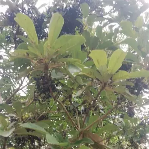 核果卵圆形式卵形,长7-10mm,直径5-6mm。表面蓝黑色,有时附有浅灰色粉末,具不规则皱纹或多数疣状突起,先端有短小2歧的柱头残基,基部有圆点状凹入的果柄痕,有时可见果柄和宿萼。果皮较薄而脆,易碎。种子1粒,棕色或棕黑色,不饱满。气微,味苦。
