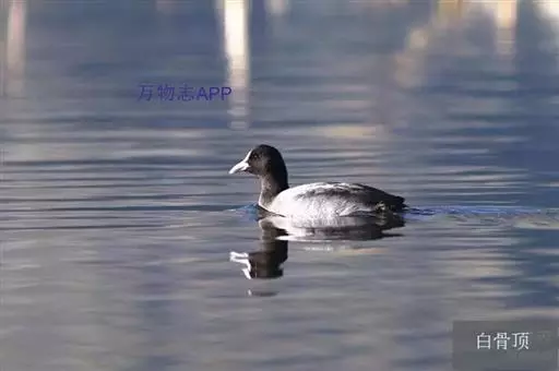 白骨顶(学名:Fulica atra)是秧鸡科、骨顶属鸟类。嘴长度适中,高而侧扁。头具额甲,白色,端部钝圆。翅短圆,第1枚初级飞羽较第2枚为短。跗蹠短,短于中趾不连爪,趾均具宽而分离的瓣蹼。体羽全黑或暗灰黑色,多数尾下覆羽有白色,两性相似。