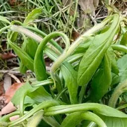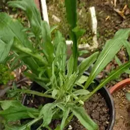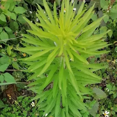 叶密集,基部叶花期常枯萎,下部叶倒披针形或长圆状披针形,长3-5厘米,宽0.3-1厘米,顶端尖或稍钝,基部渐狭成长柄,通常具粗齿或羽状浅裂,中部和上部叶具短柄或无柄,狭披针形或线形,长3-7厘米,宽0.3-0.5厘米,中部叶具齿,上部叶全缘,两面均密被贴糙毛。