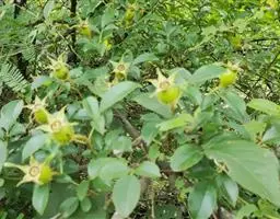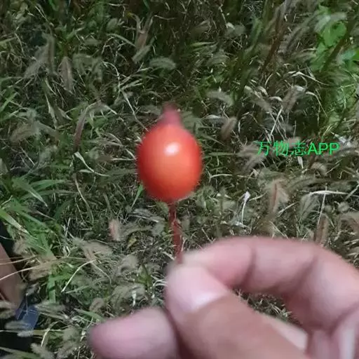 果近球形或卵球形,直径1~1.5cm,红色,光滑,萼片宿存,直立。花期6~7月,果期8~9月。