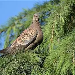 候鸟,在非洲北部越冬。turtledove一词也泛指斑鸠属的其他种类,包括领鸽(S. decaocto)、环颈鸽(S. capicola)。这些身体细长、飞行迅速的猎禽广布於旧大陆的温带和热带地区。环颈斑鸠是驯养的斑鸠变种,现在在加利福尼亚州和佛罗里达州有新大陆野生种群;有时把它列为一个种,学名S. risorea。笑鸽(S. senegalensis, 或称塞内加尔斑鸠、棕斑鸠)和斑鸽(S. chinensis, 或称中国斑鸠、珠颈斑鸠)已引至原产地以外的地方。turtledove这个俗名中之所以有turtle一词是因其叫声似龟,这种鸟类与有壳爬虫类一点关系也没有。