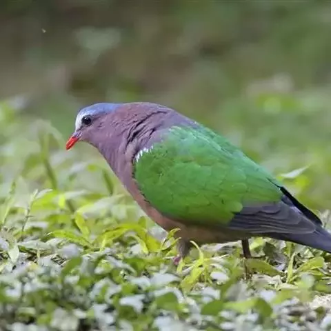 绿皇鸠体形比绿鸠类和果鸠类大,体长36-38厘米,体重508-600克。嘴也较大,嘴基扩张,…