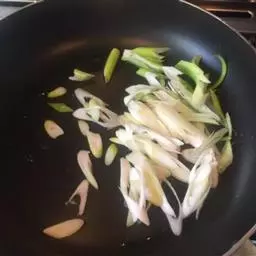 3、锅内倒入油,烧至七成熟,放葱,姜爆香;