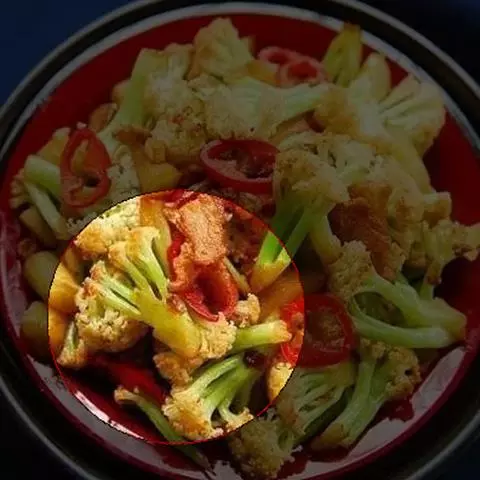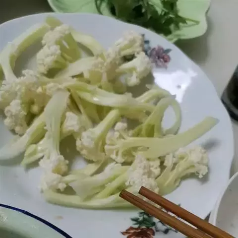 菜花比较难炒熟,所以可以在炒菜之前用水抄一下,不用水抄,就要注意火候的把握了,不然菜花会糊掉。
