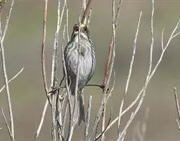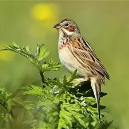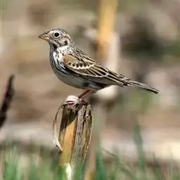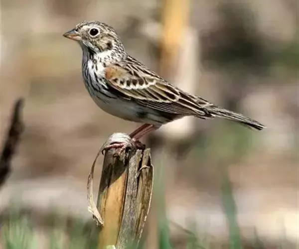 栗肩雀鹀(学名:Pooecetes gramineus):小型鸣禽。主食植物种子。喙为圆锥形,与雀科相比较为细弱,上下喙边缘不紧密切合而微向内弯,因而切合线中略有缝隙;体羽似麻雀,外侧尾羽有较多的白色。