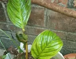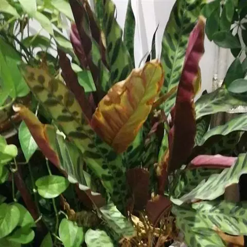 应依据“勤施薄施”的原则,生长旺季每2周施一次花生麸与复合肥的混合肥或腐熟堆肥。肥料的营养成分应以氮肥为主,磷、钾肥次之。由于竹芋为观叶植物,适当增施氮肥,能使叶片色泽更加优美。另外,可用含氮量达46%的尿素配制成0.1%的溶液,加含磷大于50%、含钾大于30%的磷酸二氢钾配制成0.2%的溶液作根外追肥,在早上露水未干时或傍晚施用效果较好。喷施时要用细孔喷雾器把叶片正反两面全喷到,每周喷1次,连续喷施3次后停止1次,然后再连续喷施。特别要注意的是施肥的浓度不宜过大,否则易引起叶片灼伤造成肥害,严重时甚至引起植株枯死。冬季休眠期和夏天太炎热时,要停止施肥。