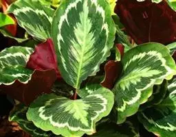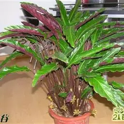 红背卧花竹芋枝叶挺拔,叶面绿色,背面红色,十分耐看,是较好的室内观叶植物。盆栽宜点缀宾馆厅堂、车站…