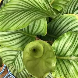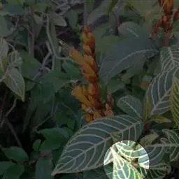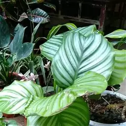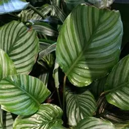 猫眼竹芋 :竹芋科,肖竹芋属多年生常绿草本观叶植物。株高可达100厘米,叶片长椭圆形,头状花序,…