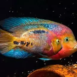 红魔鬼鱼,学名为厚唇双冠丽鱼,也叫火鹤鱼,是慈鲷科丽体鱼属下的一种观赏鱼类。血鹦鹉鱼的父本鱼种。…
