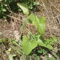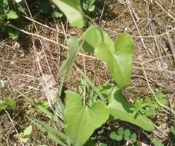 北马兜铃,别名:马斗铃、铁扁担、臭瓜篓、茶叶包、河沟精、天仙藤、万丈龙、臭罐罐、臭铃当、吊挂篮子、葫芦罐,拉丁文名:Aristolochia contorta Bunge. 马兜铃科、马兜铃属草质藤本,茎长达2米以上,无毛,干后有纵槽纹。叶纸质,卵状心形或三角状心形,顶端短尖或钝,基部心形,两侧裂片圆形,下垂或扩展,边全缘,上面绿色,下面浅绿色,两面均无毛;成熟时黄绿色,果梗下垂,随果开裂;种子三角状心形,灰褐色,扁平,具小疣点,浅褐色膜质翅。花期5-7月,果期8-10月。