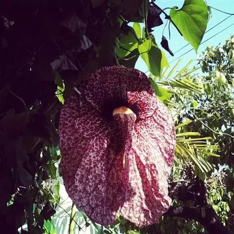 巨花马兜铃花朵的主要部分只有一片,看起来好像是一个巨大的、带有纹理的兜状物,而不像普通的花朵那样拥…