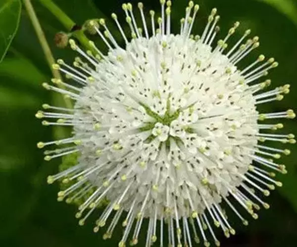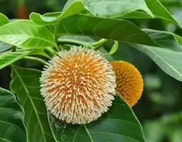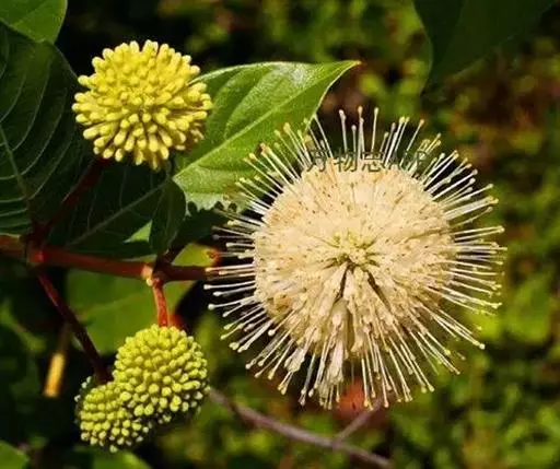 灌木至小乔木,高1-4m。根部发达,根皮浅红色。茎分枝极繁,小枝幼时被柔毛,略扁,微四棱柱形,成长后圆柱形,褐色,光滑,节明显。单叶对生和3叶轮生;托叶三角形,长约4mm,顶端常有一黑色腺体;叶片近革质;矩圆形或椭圆状披针形,长10-15cm,宽2-5.5cm,先端短尖或渐细尖,基部浑圆或近心形,全缘,上面光滑,下面常被柔毛。秋季开白色花,头状花序球形,盛开时直径3-3.5cm,微香,单生或成总状花序式排列于枝端部或上部叶腋,花序梗较长,长2.5-6cm;光滑或略有柔毛;萼倒圆锥形,长约3mm,顶端4裂;花冠漏斗形,长约8mm,裂片4,钝头,在萼檐裂片和花冠裂片间常有黑色腺体;雄蕊4;着生于花冠喉部;子房下位,2室。小核果长约6mm,顶冠以宿萼。种子具翅。花期秋末冬初(海南省为春末夏初)。