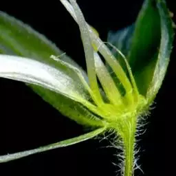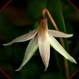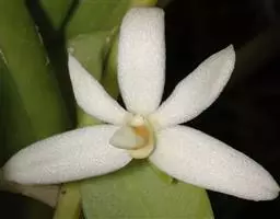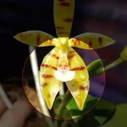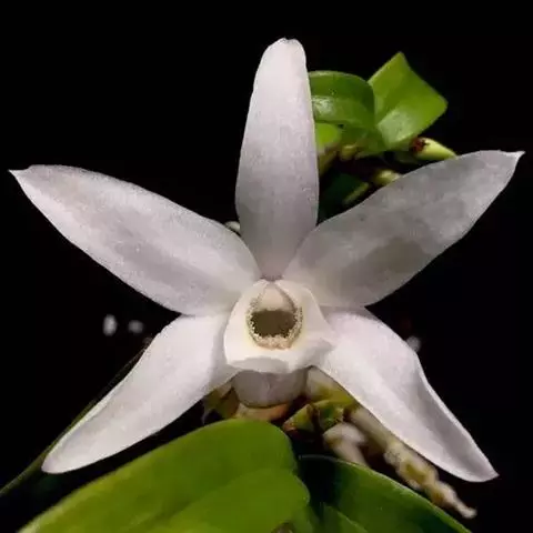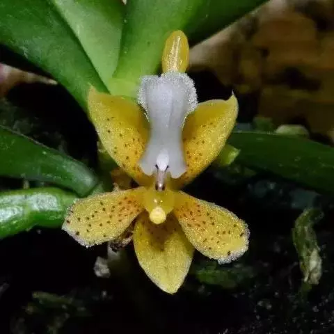 花瓣线状披针形,略短于萼片,宽2-3毫米;唇瓣近卵形,长1.6-2厘米,宽约1.5厘米,3裂;侧裂片直立,半卵形,先端钝;中裂片近长圆形,长6-7毫米,宽约4毫米。边缘多少皱波状;唇盘上有3条纵褶片,从唇瓣基部延伸至中裂片的下部,褶片具皱波状缺刻;蕊柱稍向前弓曲,长约1.3厘米,两侧具翅;翅向上渐宽,在上部一侧宽约1.5毫米。花期3月。