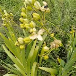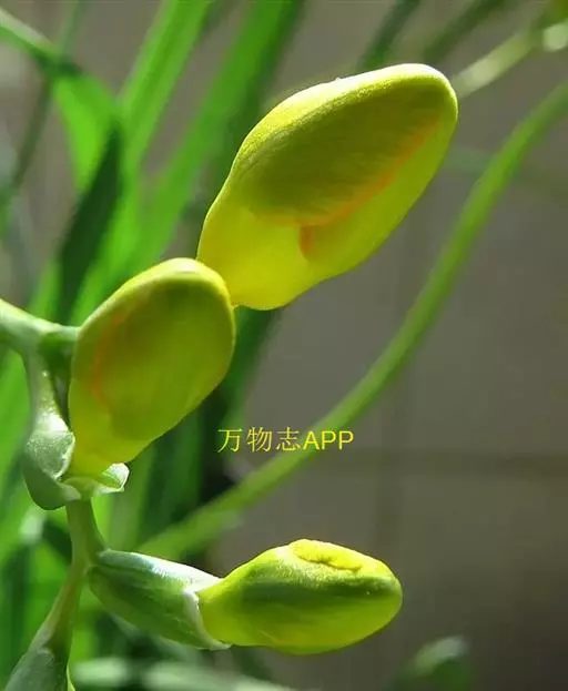 鹅黄小苍兰(var.Leichlinii):叶阔披针形,4~5枚,长约15cm,宽1.5cm,基部呈白色膜质的叶鞘,花宽短呈钟状,有铃兰般的香气,花大,鲜黄色,花被片边缘及喉部带橙红色,一穗有花3~7朵。